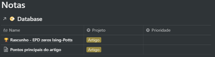 A mudança é feita com apenas um clique. Note que o nome à direita da palavra Database mudou de (Table view → Prioridades), é ali que a gente troca as visualizações.